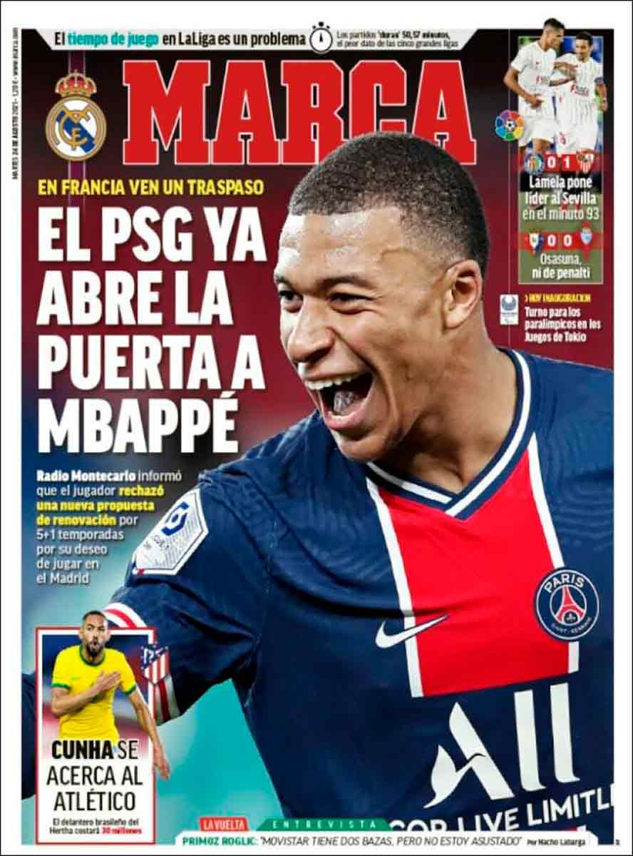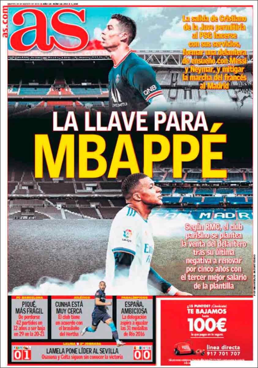 Sport también guarda un pequeño recuadro abajo a la derecha para hacerse eco de que el PSG ya se plantea vender a Mbappé. Si hasta ellos lo dicen…