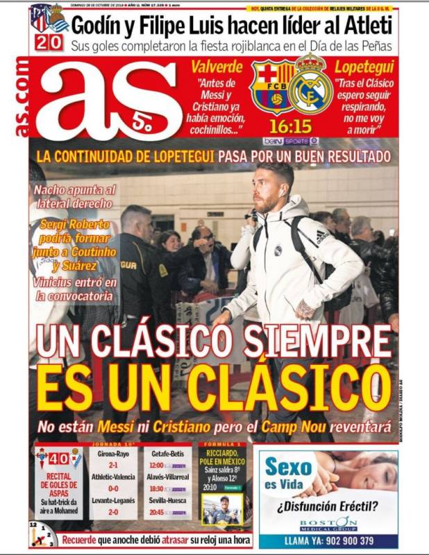 Hola, galernautas. El lunes, a eso de las 15:00, Antonio Valderrama (@Fantantonio) escribió en Twitter que lo del Clásico sería "de puerta grande o enfermería" para el Real Madrid. "Como nos gusta a nosotros. Ganar como toreros o la extinción", añadió. Pues bien, ese día ha llegado. Estamos ante un Barça-Madrid que puede marcar un antes y un después en la temporada blanca. Hasta ahora, la suerte ha sido esquiva y nuestros propios errores nos han hecho firmar un inicio de campaña bastante pobre, pero noviembre asoma y el campeón de Europa quiere aferrarse a la Liga conquistando un Camp Nou que ansía vernos claudicar.