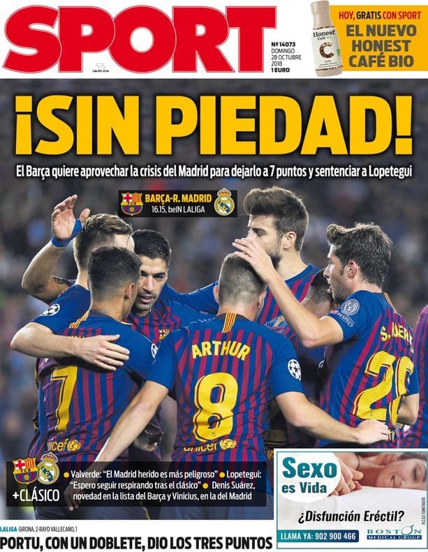 No será fácil pese a que el VAR se intuye como nuestro aliado después de tantos años sufriendo arbitrajes extremadamente caseros -por ser generosos- en el Camp Nou. El Barcelona ha mejorado ligeramente en los últimos encuentros y ante el Inter demostró que puede competir bien sin Messi. El problema es que el Real Madrid no es el Inter por mucho que los italianos, a día de hoy, estén mejor que nosotros. El Real Madrid, en condiciones normales, exigirá al Barcelona mucho más que un buen rato de competitividad, seriedad y compromiso. Lopetegui quiere, porque así lo dejó ver en sala de prensa, que su equipo sea incómodo, intenso, agresivo, voraz, de tal manera que el Barcelona se vea agobiado y no encuentre en el '10' la vía de escape habitual.