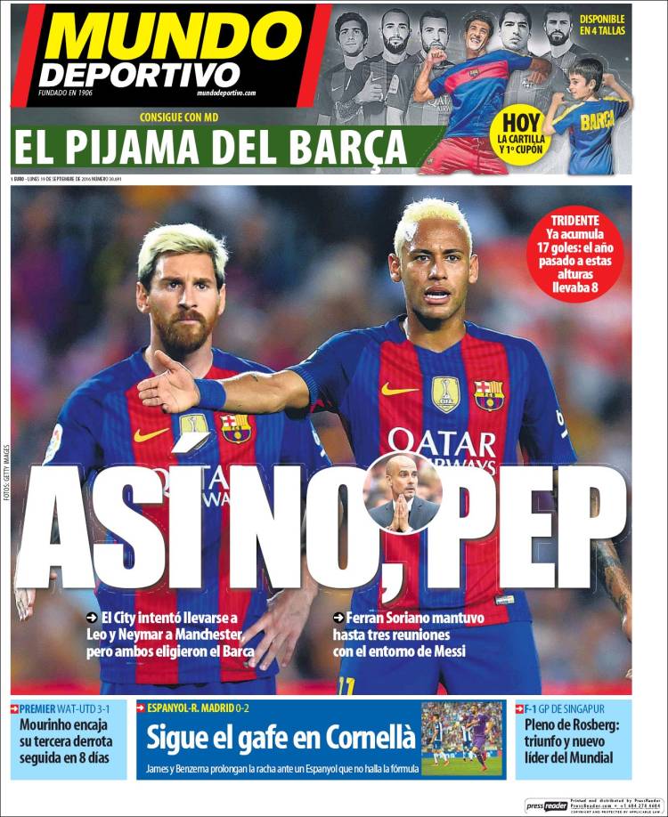 "Así no, Pep", titula severamente el diario de Godó, grande de España. ¿Qué ha hecho el ilustre meacolonias -el mote se lo autoatribuyó, por lo que no vemos insulto ni desconsideración en el uso del mismo- para merecer tan seria admonición por parte de un medio que en teoría le es afín?, os preguntaréis anhelantes. Lo de "anhelantes" es un decir, claro, ya que el único anhelo que a estas alturas, estamos seguros, sois capaces de albergar -y es posible que ni eso- es el de una prensa que no caiga en el más absoluto de los ridículos. ¿No es Pep Guardiola un profesional que trabaja para el club que le paga, y que por tanto intenta lo mejor para el mismo? Parece que Pep intentó fichar a las blondies -este apodo también se lo han autoatribuido, pues no otra cosa supone tan chirriante recurso al agua oxigenada por parte de Leo y Ney- y eso está muy pero que muy feo, como si por intentar hacerse con sus servicios hubiese el de Santpedó consumado una traición a su pueblo, a su tribu, a su (incluso, ay, casi) raza. El diario de Godó, grande de España, se autoatribuye -ahora sí que seguro que sí- la portavocía de todo el pueblo catalanoculé, a quien se siente en el derecho de representar para tirar de las orejas al inventor del fútbol. Mirad, mirad.
