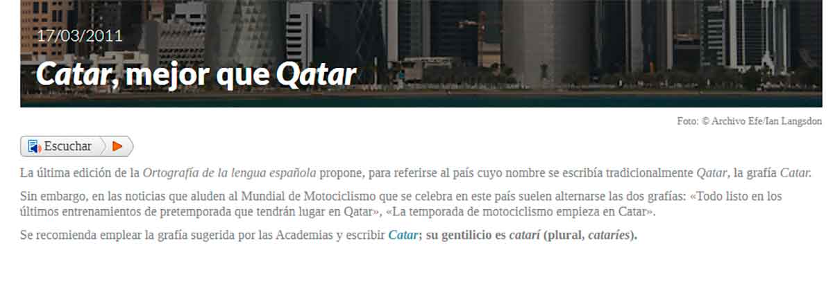 Buenos días, queridos galernautas. No es que estemos locos de atar, pero al ver las portadas, nos ha chirriado un poco leer la grafía Qatar. De modo que acudimos a la RAE y a Fundéu.