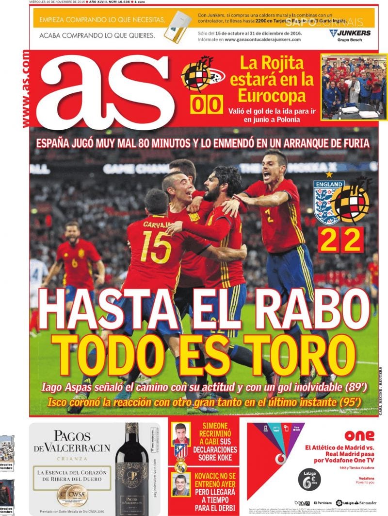 A mí, me llama la atención el título del editorial de Relaño en el As: "Reacción de furia tras un partido horrible". ¿"Furia"? ¿Qué se hizo el tiquitaca? Los bajitos jugones, ¿qué se hicieron? ¿Qué fue de tantos centrocampistas, qué de tanta posesión como trajeron?