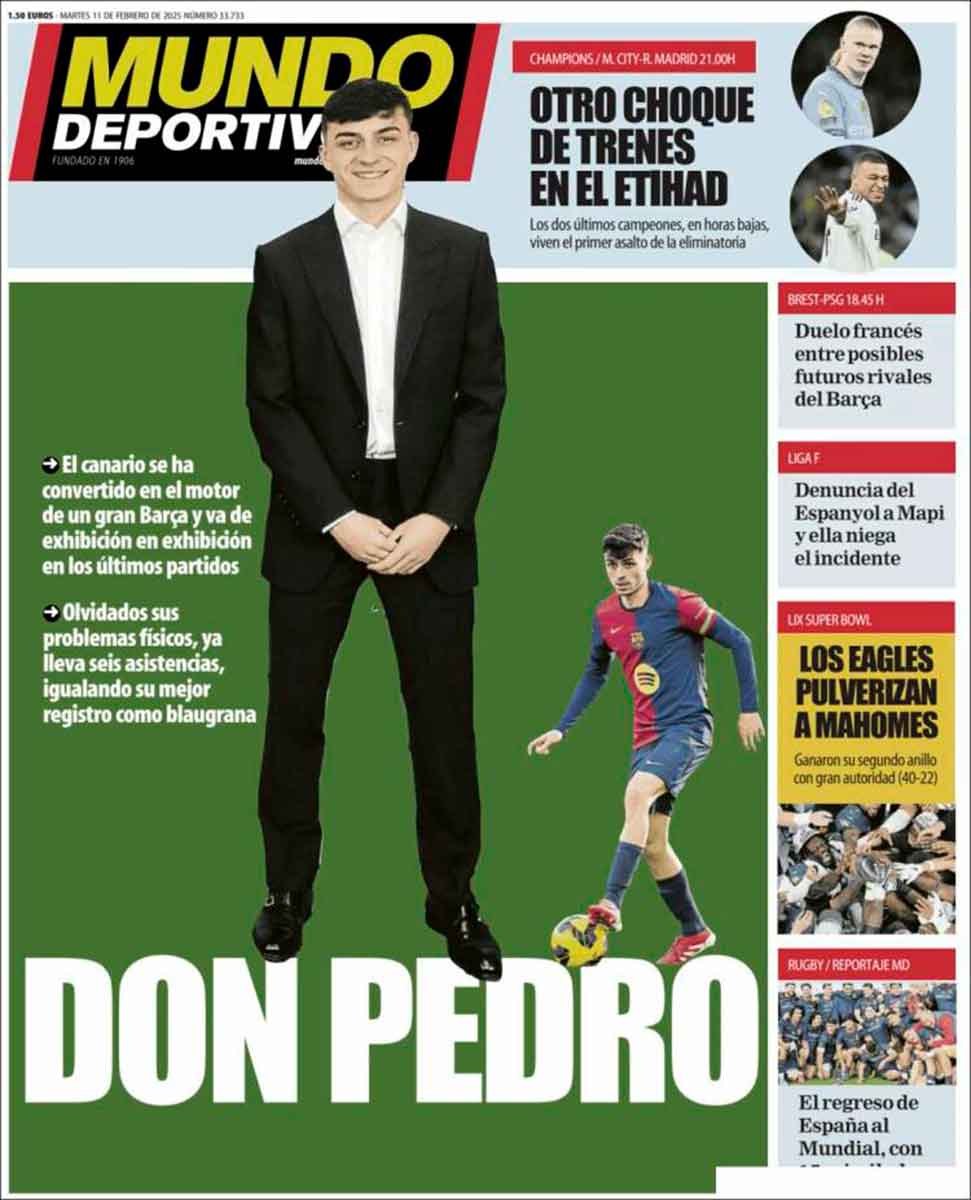 En la prensa culé hoy toca sesión de baño y masaje a Pedri. Bueno, según Mundo Deportivo, a don Pedro. En una portada que parece perpetrada con el Paint, el canario aparece vestido como Ernesto Sevilla en Muchachada Nui.
