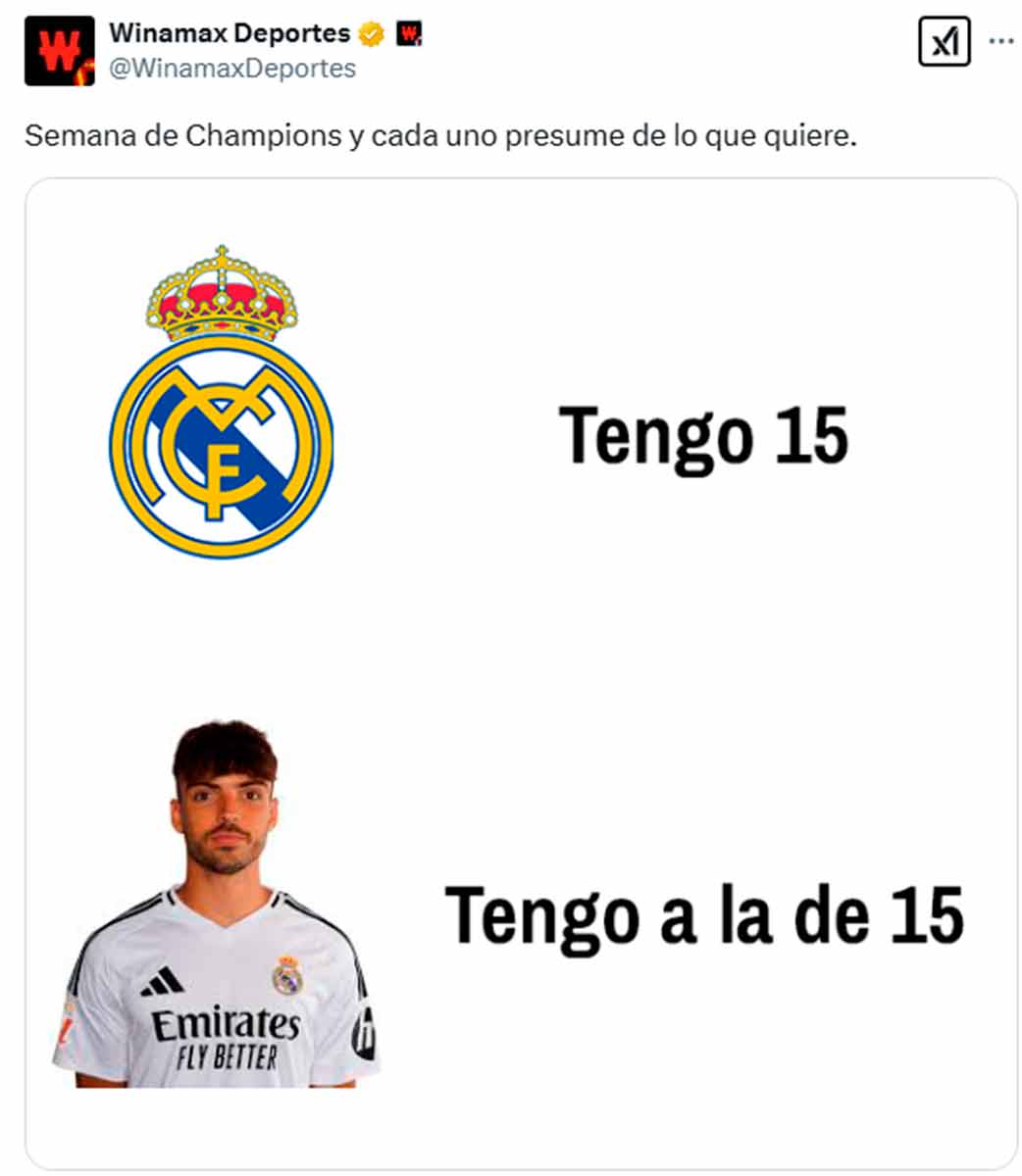 2. Los Real Madrid vs City han sido los mejores partidos que podíamos ver durante los últimos años a nivel europeo. Estamos ante el primero de esta temporada y las noticias son, aún, del balón de oro, de lo malo que es Vini (hoy también como compañero, que esto es nuevo), de ofertas de Arabia (el año pasado fue Rodrygo, éste Vini y hasta Carlo) y, lo más grave, usar a Asencio para promocionar tu casa de apuestas entre antimadridistas. Actitud que, por cierto, irá cada vez a más, porque los CM más jóvenes no distinguen la realidad del meme. Le costará su puesto si hay denuncia por calumnias, pero si no llega, ni eso.