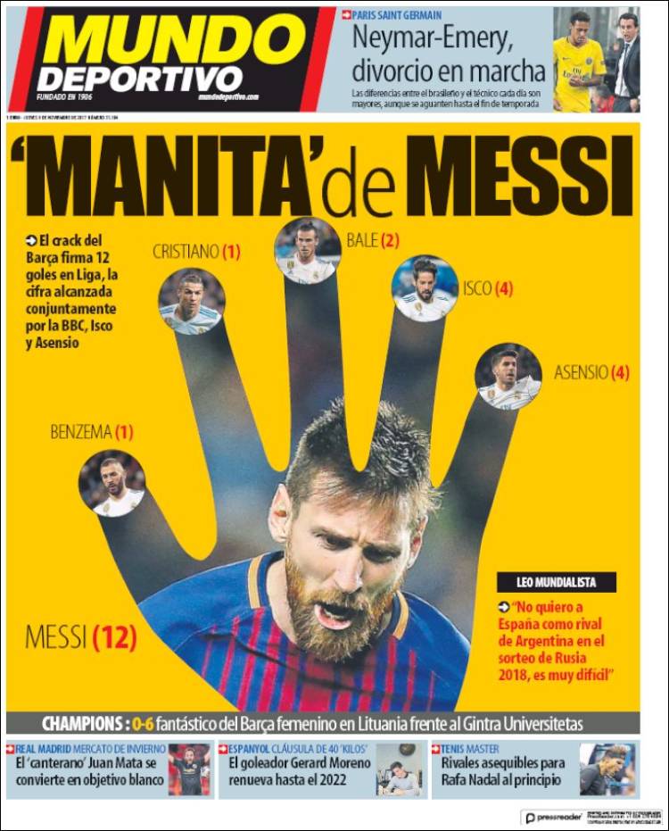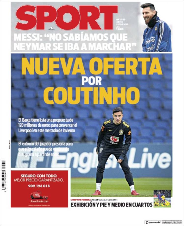 En Matrix Serrat es un botifler, el Barça juega oprimido la Liga española y Florentino encarcela al Govern pero las portadas son para Messi (cómo no) y para Coutinho.