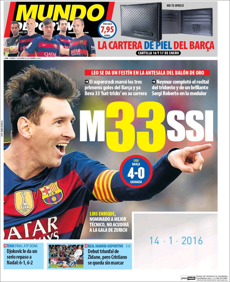 Menos mal que Mundo Deportivo está ahí cuando se le necesita para ordenar el mundo. Abajo, a los pies del peinado de pájaro loco de Messi y de un titular para el que pedimos consejo de la Real Academia, el partido del Madrid queda resumido con un elogio general y un pero personal focalizado en la figura de Cristiano, quien "se queda sin marcar". Por fin algo de coherencia en todo esto. Una coherencia loquísima, por cierto, e incluso cómica y hasta tierna, pero coherencia al fin.