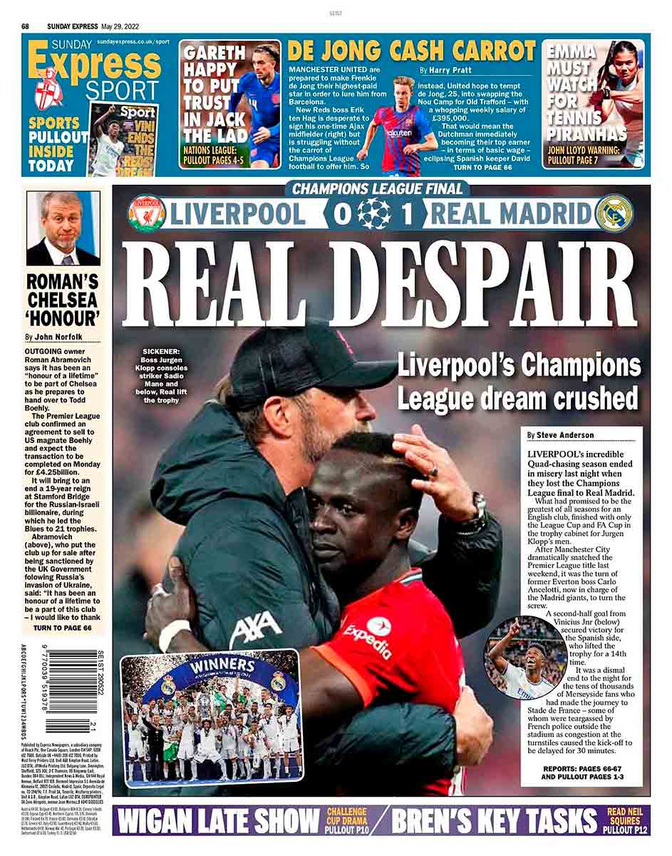*El País destaca un niño del Liverpool que llora , en lugar de un niño madridista feliz (ahí lo dejo)