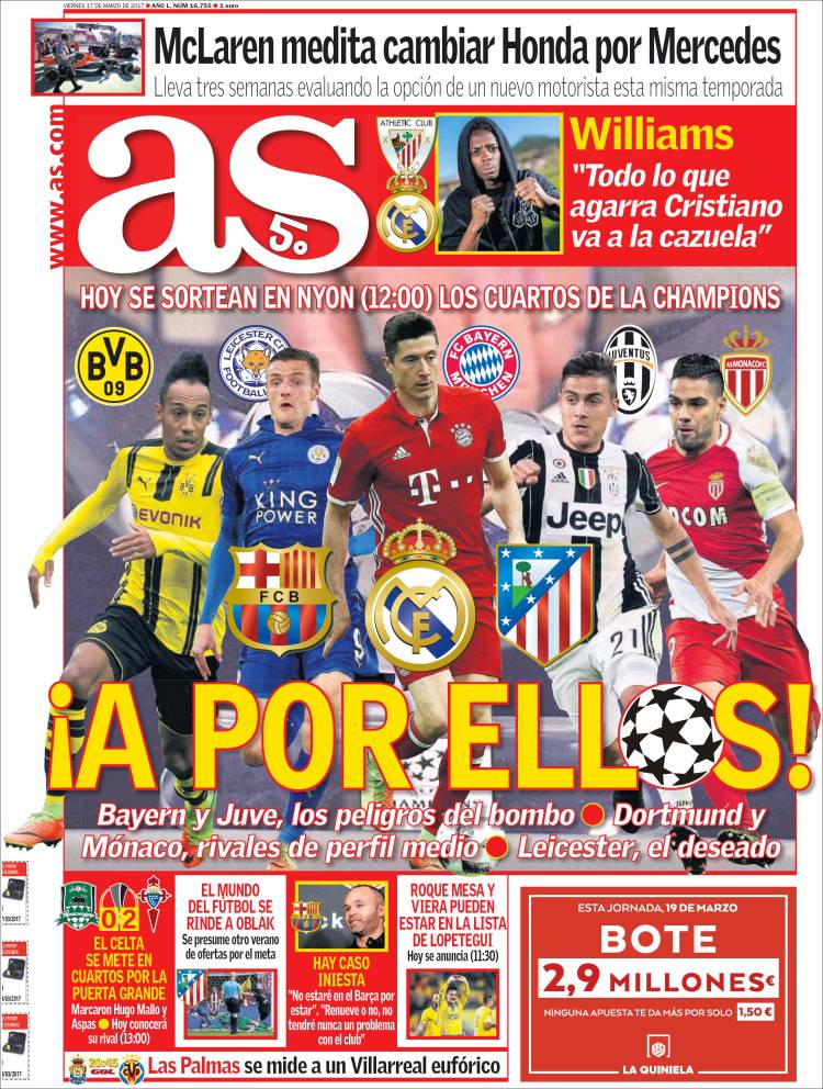 Bueno, pues nos ha tocado el Bayern, lo mejor que el partido de vuelta es en el Bernabéu, varias apreciaciones: El Bayern prácticamente tiene ganada la liga, puede hacer rotaciones todas las que quiera porque tiene un plantillón, nosotros tendremos que jugar el 8 sábado con el At. Madrid, el 11-12 con el Baryern, en Alemania, el 15 jugamos en Gijón, se está jugado la vida, el 18-19 recibimos al Bayern, y el 23 de abril recibimos a los culerdos, tengo claro sólo una cosa, que si jugamos con la actitud, ganas y profesionalidad que lo hicimos en Éibar, ganamos todos esos partidos, saludos.