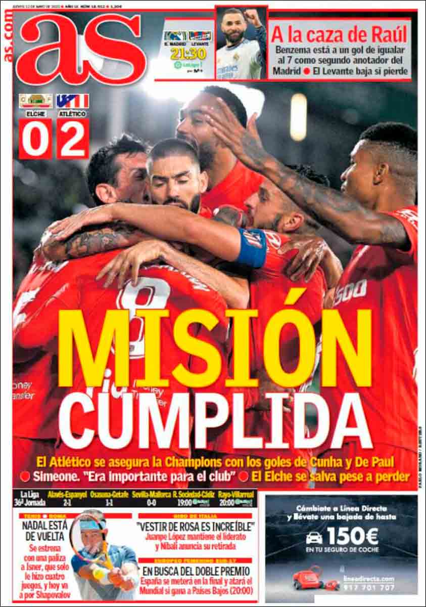 Hoy sí el As pos Relaño saca al "equipo del pueblo" en portada, hay algo bueno que contar...