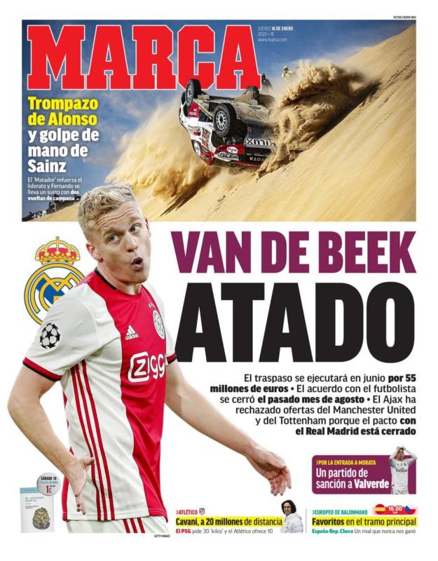 Por lo demás, como veis, poca chicha en la prensa deportiva madrileña. As trae un refrito de los éxitos del Madrid en la pasada década, acaso en el afán de congraciarse con Florentino en esta etapa de relañismo postRelaño, y Marca viene con Van de Beek, que según nuestra información está en efecto recontrafichado y estará en la plantilla en junio. Casemiro, Valverde, Kroos, Modric, Ødegaard, Van de Beek.
