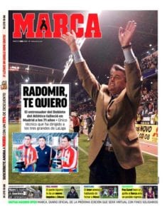 Buenos días. Ha fallecido Radomir Antic. Sin más dilación, vayamos a lo importante, que es lamentar esta gran pérdida para el fútbol español, así como enviar un muy fuerte abrazo a su familia y allegados y a todos los amigos atléticos, para quienes Rado era mucho más que una leyenda. No en vano capitaneó a los rojiblancos en la conquista de su mítico doblete en el año 1996, tal vez la mejor campaña de su historia. “Radomir, te quiero”, le cantaba el viejo Calderón, adaptando la letra a la melodía de aquella canción de carnaval brasileño.