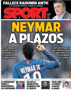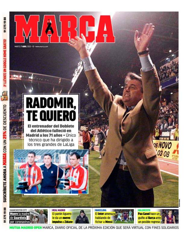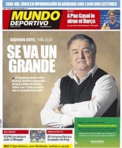 Y sí, amigos, nos preguntamos exactamente lo mismo que vosotros, es decir, en qué demonios pensaron anoche los responsables de Sport y de As para dar sus portadas a Neymar y Mbappé cuando acaba de fallecer Antic, a quien dedican faldones a todas luces insuficientes. Tanto lo de Mpappé como lo de Neymar son elucubraciones sin ningún peso que bajo ningún concepto deberían haber privado a Radomir de lo que Marca y Mundo Deportivo, en cambio, sí aciertan a otorgarle.