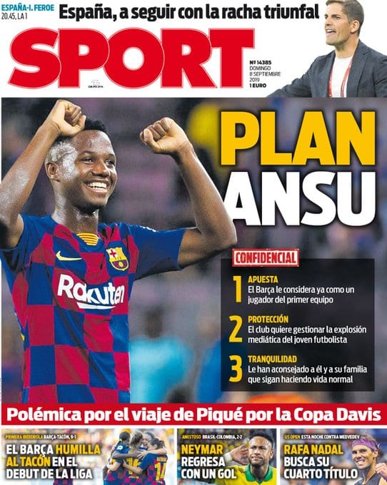 En 'Sport' dejan un poco de lado al enamorado Messi para centrarse en Ansu. Por lo que pueda pasar, vaya. La joya de la cantera tiene locos a todos y el club ya estaría trabajando para ofrecerle el rol que merece, el de un suplentísimo habitual, pero con portadas y mucho cariño mediático. Lo bueno es que, según el diario cataculé, le han aconsejado seguir haciendo vida normal. Nos quedamos más tranquilos.