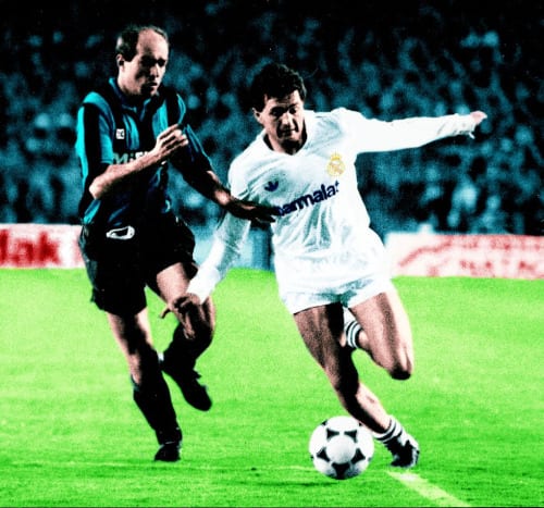 El quinto entorchado liguero seguido de un ciclo glorioso del Real Madrid fue en la campaña 1989-1990. Beenhaker se había marchado y en su lugar se firmó al galés Toshack. El británico colocó a Gordillo como carrilero con toda la banda izquierda para él y el ‘Galgo del Polígono de San Pablo’ se adaptó a las mil maravillas. Seguía siendo un puñal por banda y fue protagonista con sus pases de gol en el récord de los 107 tantos de esa Liga. El club de Chamartín fue netamente superior a todos sus contrincantes y sumó nueve puntos más que el Valencia y once más que el F.C. Barcelona.