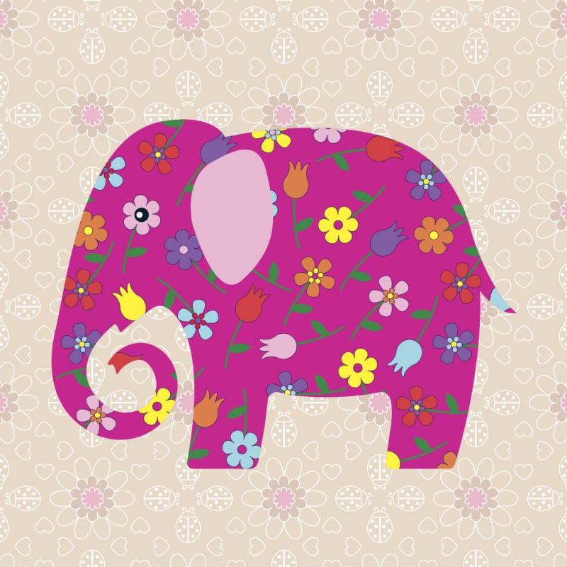 ¡Qué bonito el elefante rosa decorado con papel pintado!