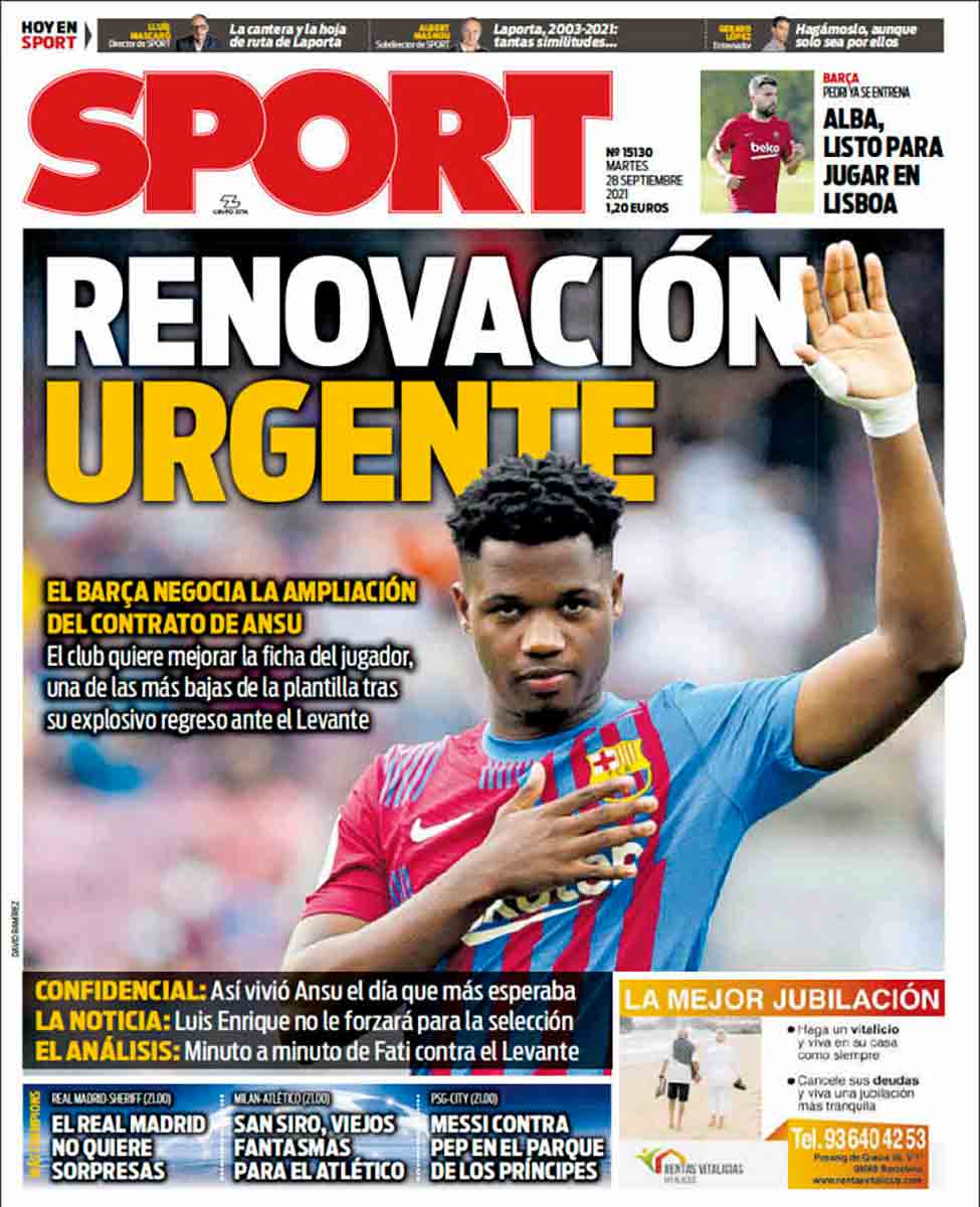 Y os dejamos con la portada de Sport, que como no podía ser de otra manera también es para Anssumane Fati Vieira, aka Ansu Fati. Publican una foto del futbolista en un juzgado estadounidense —al que acudió disfrazado del Barça— en el momento en el que le preguntan: ¿promete usted decir la verdad, toda la verdad y nada más que la verdad? El chico respondió: es que estoy en el Barça.