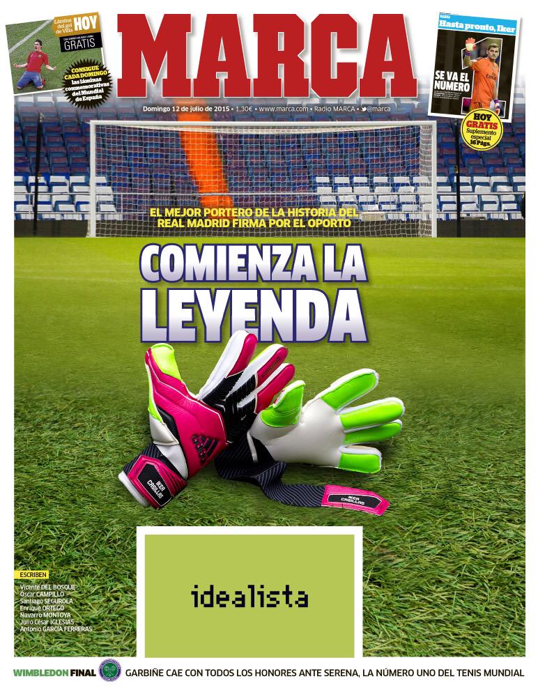 "Comienza la leyenda", titula Marca ante una portería vacía y unos guantes que, tirados sobre el césped, parecen buscar manos que sirvan de contenido. Resulta paradójico que lo que Marca ve ahora desierto y sin carne ni hueso, lo viera buena parte del madridismo justamente en los últimos años de Iker, cuando sus manos llenaban aún esos guantes y su cuerpo pisaba la línea de gol de la portería. Ve Marca ausencia en este momento de despedida y no la vio cuando el nivel deportivo de Casillas hacía temblar al madridismo en cada córner, cuando su defensa percibía el riesgo y se aculaba en torno al portero, cuando el talento (dicen que) innato del de Móstoles comenzó a menguar tal vez a causa de su poca exigencia en el esfuerzo diario, cuando era un escándalo nacional ver a Iker sentado en el banquillo, pero no, por supuesto, a Diego López ni menos aún a Keylor Navas. Ahí no vio Marca ausencia alguna; en esos momentos, prefirió el Diario de la Hernia mirar para otro lado, justamente el contrario que buena parte del madridismo. Seremos los raros nosotros, pero consideramos que el (justo y necesario) señorío en la despedida suena algo falsario si durante años se han alimentado tensiones, hostigamientos y tendenciosidades.