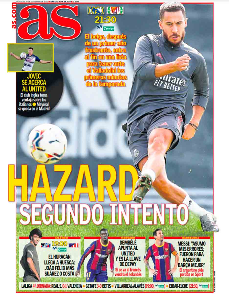 La primera plana de la Ouija de hoy, en esencia, es una buena muestra de lo expuesto en líneas precedentes. As no miente. Efectivamente es el segundo intento del belga. Y con esta mala leche se lo preguntaremos al Míster. Tampoco es la primera ocasión en la Liga para Joao Pelé Félix. Pero uno, apenas transcurrida la primera jornada ya es un huracán, y el otro tiene un problema gordo, está gordo, y a Zinedine le caéis gordo.