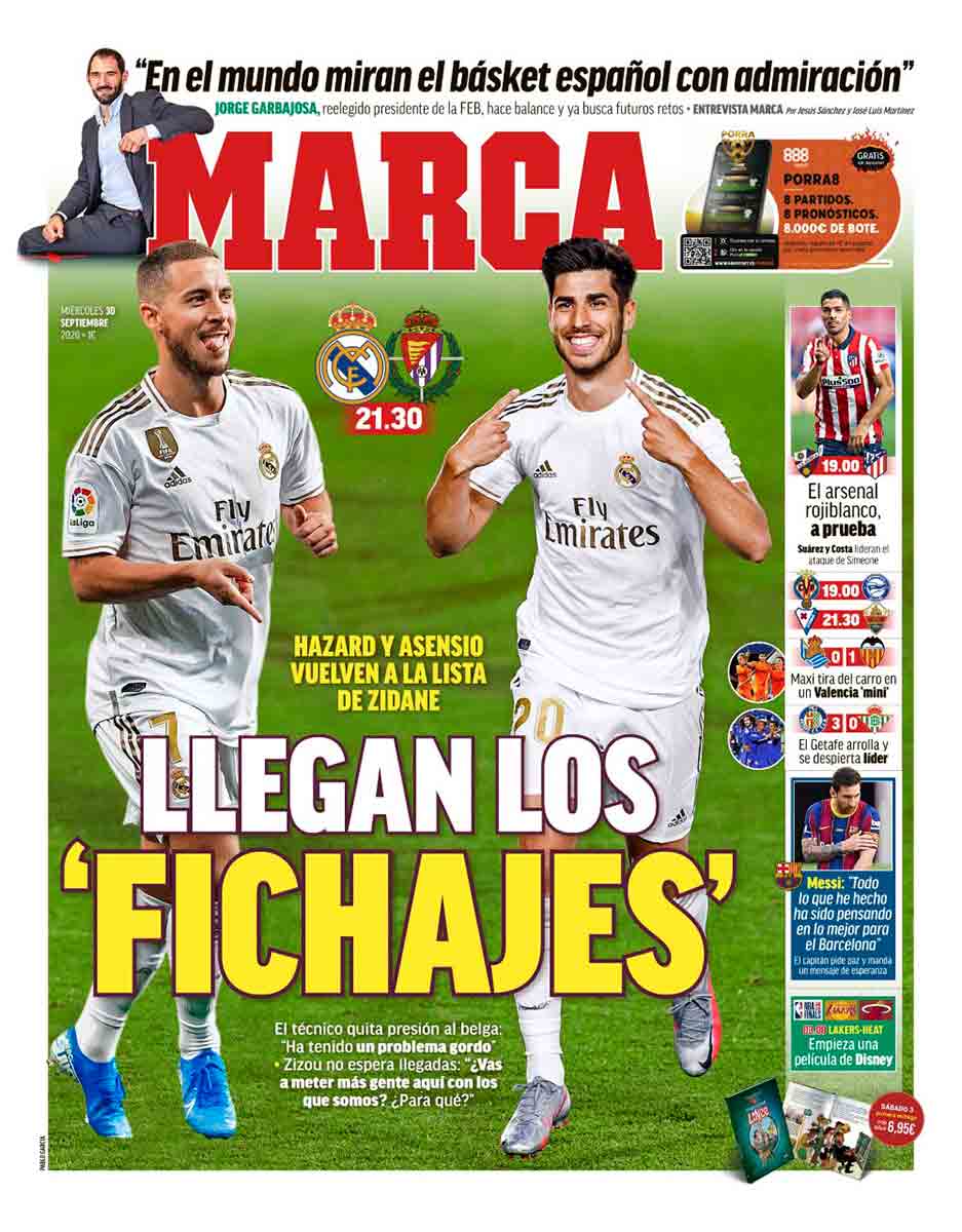 Ni es el partido del siglo, ni tampoco la portada de Marca invita a grandes jaranas. Si aceptamos barco como animal acuático, aceptaremos a Eden y Marco como los fichajes de la temporada, con permiso de Martin Odegaard. Nos inspira, eso sí, la sonrisa de Asensio, cuya irrupción en el Real Madrid, suponemos que aún recuerdan, a base de clase, talento y obuses supercoperos dirigidos a las escuadras de las porterías del Barcelona y Sevilla, acabó por desatar una verdadera ilusión en el madridismo. Pero, efectivamente, sólo en el madridismo.