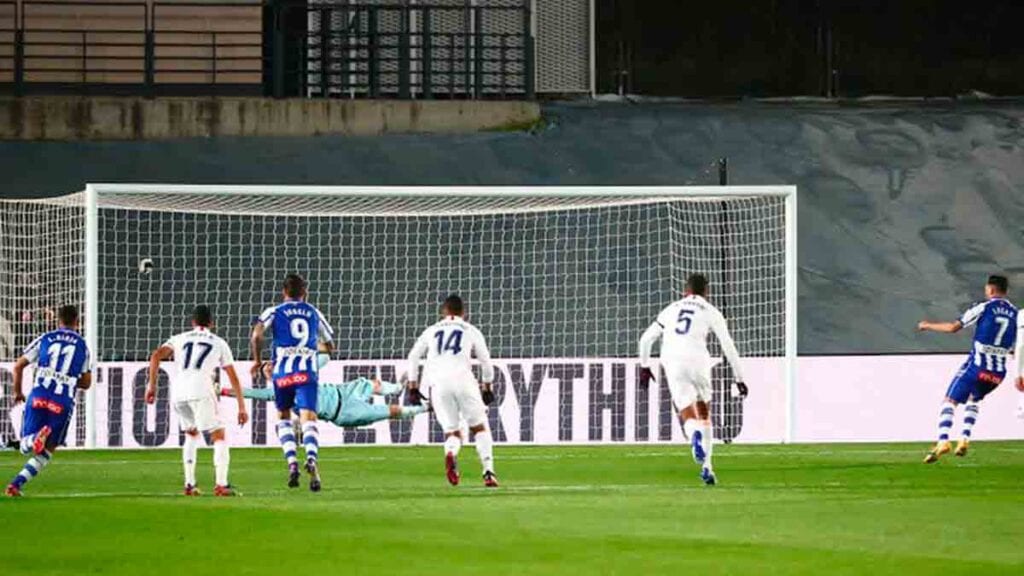 El partido no pudo empezar peor: un córner regalado por Marcelo derivó en un penalti regalado por Nacho por una de esas manos modernas. Lucas Pérez marcó el 0-1 haciendo presagiar otro partido difícil.