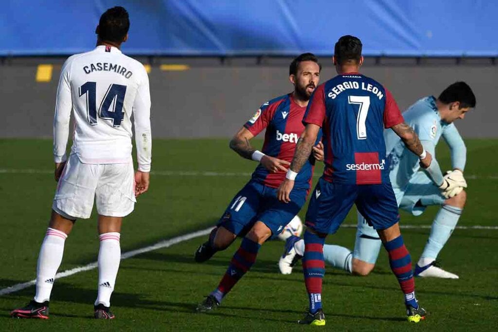 En el 78 ya no pudo hacer nada Courtois ante Roger que aprovechó la pasividad defensiva del Madrid para fusilar al belga. La respuesta desde el banquillo fue sacar a Asensio y Benzema del campo para introducir a Arribas y Mariano. Lo cierto es que el Madrid prácticamente se despidió de la Liga con Vinícius, Mariano y Arribas formando su ataque.
