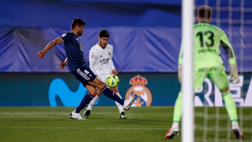 La segunda parte se inició marcada por la lesión desgraciada de Aspas y por una agresión disimulada de Hugo Mallo a Asensio, que en lugar de quejarse optó por marcar un gol. Fue un gran robo de balón de Modric que habilitó a Casemiro para profundizar sobre Lucas, quien devolvió la asistencia a Marco para que este refrendase su pujanza con un gol tranquilizador. El Madrid tiene más que temer, en general, de su propia tendencia a perdonar en ataque que de la pericia de sus rivales, y el buen porcentaje de acierto de cara a puerta constituye así una excelente noticia. Para quitarme la razón, Benzema falló una relativamente sencilla cuando ya se disputaba el último tercio de partido.