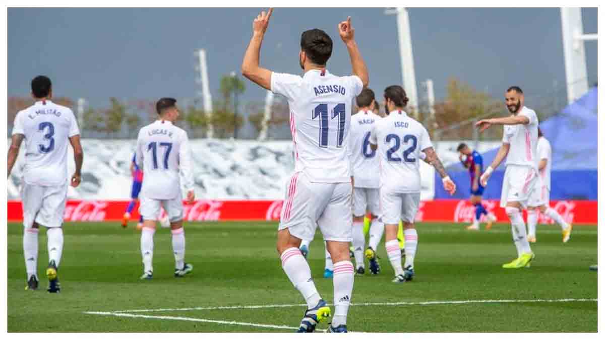 Tras ello, el partido entró en una fase más tranquila de dominio local. En el 20' una falta forzada por Lucas fue botada por Asensio. Su disparo, enorme de intención, se marchó al larguero, cerca de la cruceta. Sin hacer grandes milagros el Madrid lograba desordenar bastante a menudo a un Eibar que se mostraba inseguro. La calidad de Modric y Marcelo estaba marcando la diferencia. En el 36' de nuevo otro golazo fue anulado por fuera de juego. Asensio había hecho una auténtica genialidad con su remate de tacón, pero estaba adelantado.