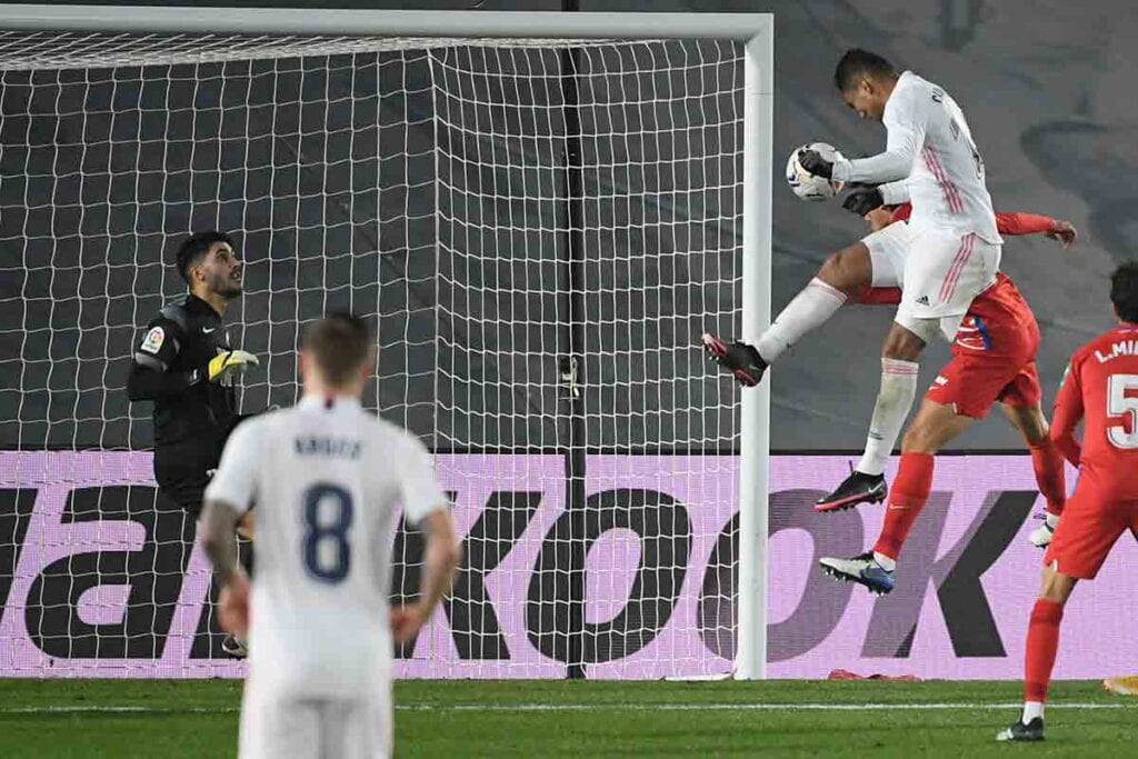 El VAR ha estado rumiando durante más de un minuto una posible mano de Casemiro que estaba clarísimo sólo con una toma que le había dado en el muslo. Sin embargo, el gol anulado a Benzema por fuera de juego (que si fue, lo fue por cm) se despacha rápidamente. Estos detalles cantan la traviata y estaba claro que nos estaban esperando con la escopeta cargada tras las quejas de los catalufos.