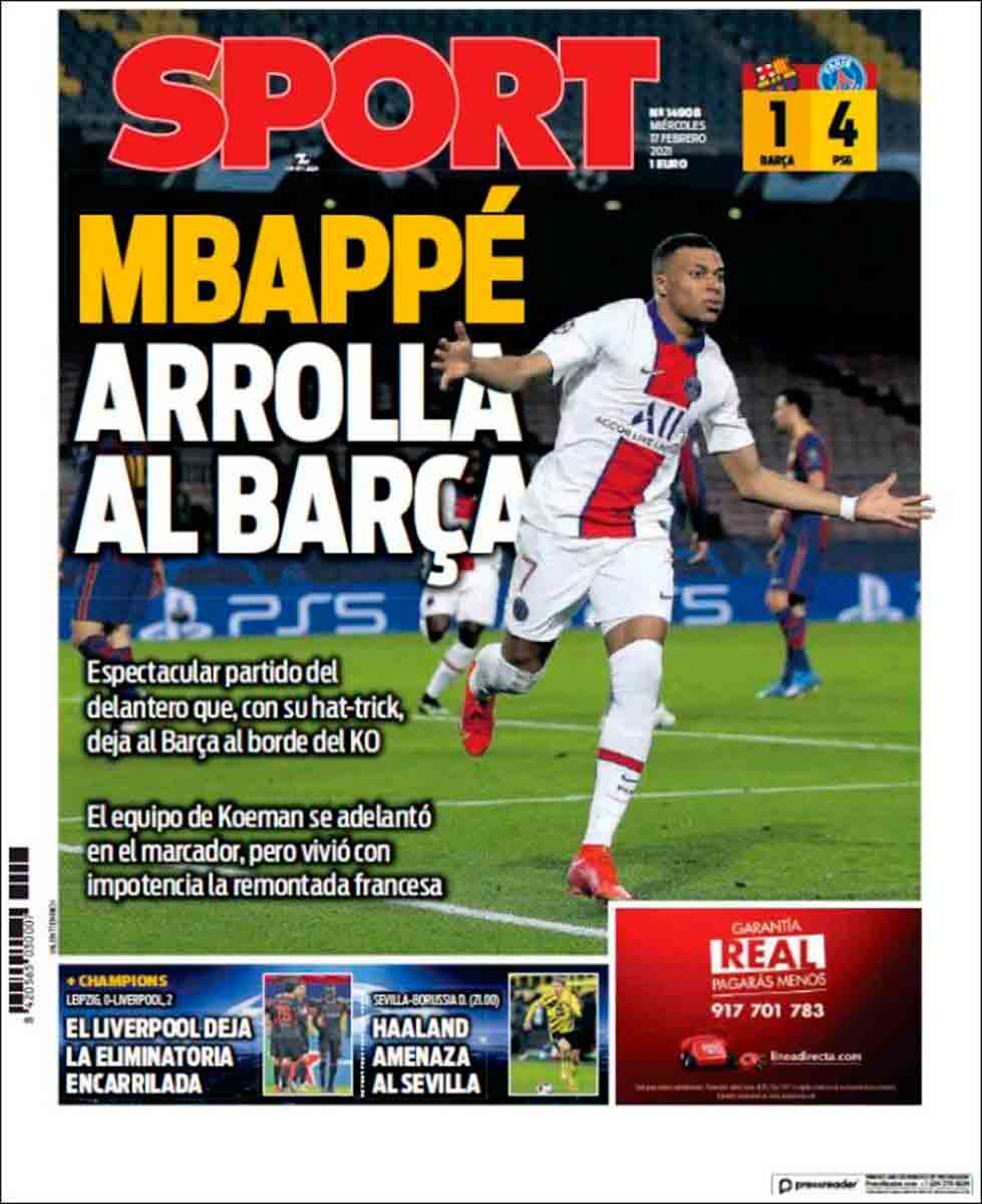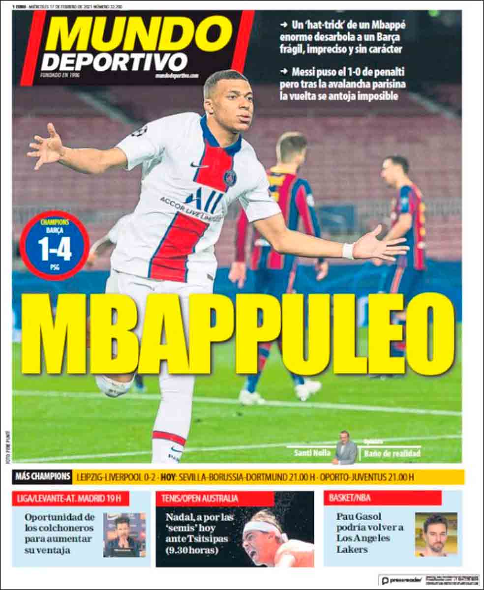 Mundo Deportivo opta por combatir el hundimiento a punta de juegos de palabras. Ya sabemos lo patéticos que pueden llegar a ser cuando se ponen en este plan. MBAPPULEADOS, con todo, no deja de tener su gracia, o tal vez es solo que nos han agarrado de buen humor, vaya usted a saber por qué. Se nos ocurren unos cuantos más, entre los que MBAPPENETRADOS ocuparía un lugar destacado.