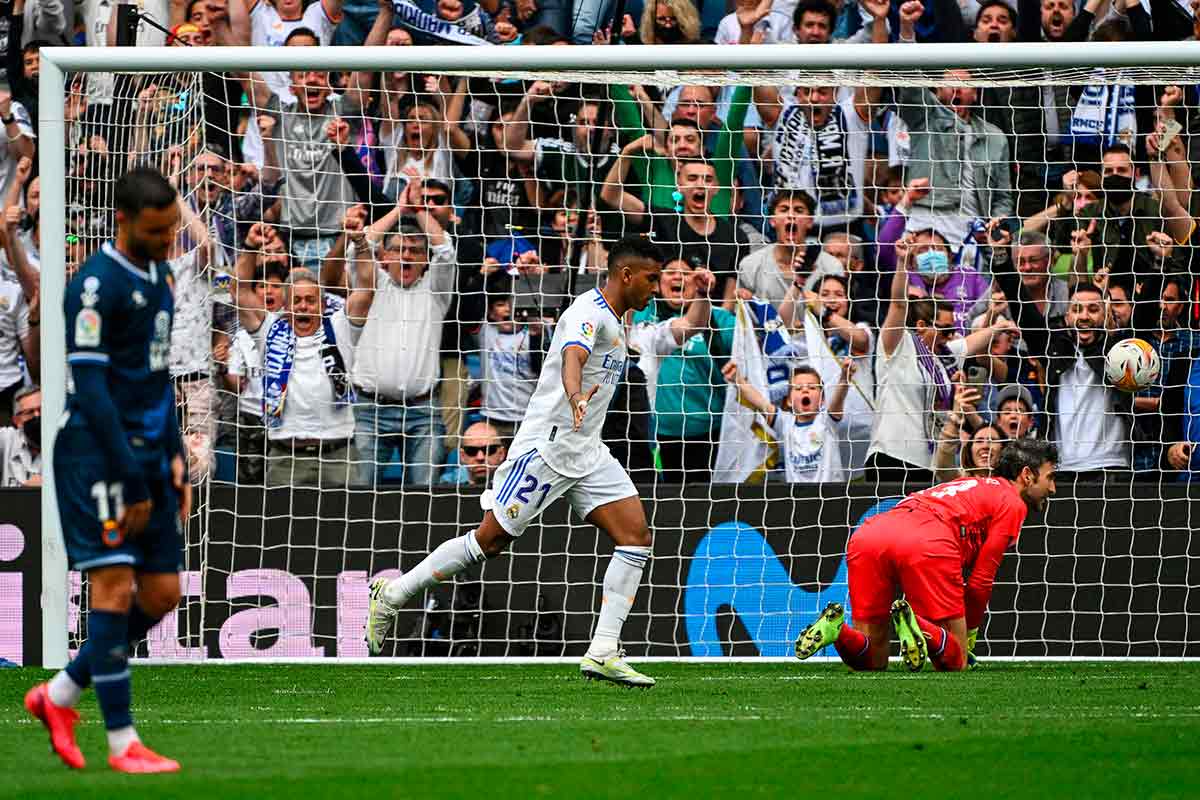 El Madrid buscaba el gol y el Espanyol lo intentaba también por su parte, aunque sin volcarse. Camavinga y Ceballos iban imponiendo su dominio en el centro del campo y Modric ponía la guinda diferencial. En el 32’ una buena combinación por la izquierda desembocó en Rodrygo. El brasileño estuvo magnífico generándose el espacio para chutar con la derecha y sellar el 1-0.