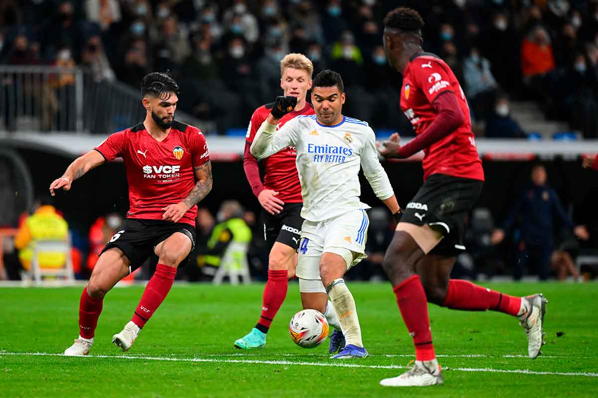 No obstante, golpe a golpe, el Valencia —acogotado— buscaba oxígeno en el rincón. Un error en la salida cuando el primer tiempo agonizaba, permitió el robo franco de Casemiro, que salió disparado hacia la meta che. Y entonces, sesenta partidos después, sucedió.