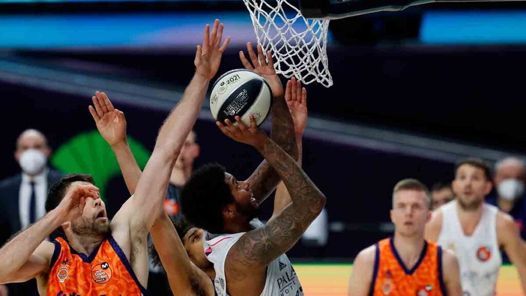 Intercambio de canastas y por fin el Madrid dispone de tiros libres después de entrar el Valencia en bonus, con Trey Thompkins infalible, ya por encima de los 20 puntos anotados. Varias acciones individuales, culminadas con un triple de Llull, pusieron de nuevo una diferencia de 16, 80-64, que se antojaba decisiva a poco de más de tres minutos para el final. El Madrid siempre jugó con muchas más ganas de pelear, de ganar, de sufrir y de sudar. Los últimos minutos fueron para que los de Ponsandreu maquillasen el resultado con triples de Hermansson, pero el resultado jamas peligró.