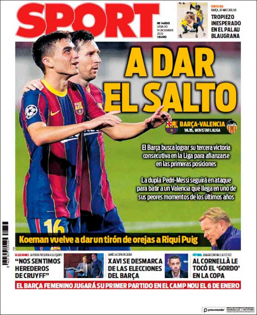 Vuelve la dupla. La “dupla” es una de las palabras favoritas del diario que rectifica sin rectificar. El diario que dice rectificar, pero no lo hace. El diario que miente, rectifica y vuelve a mentir en la rectificación, conservando además la mentira inicial. Un prodigio. Hablábamos de la “dupla”, esa palabra que un día aprendieron y utilizaron en Sport y desde entonces usan sin cesar. En la dupla siempre está Messi y luego otro cualquiera. El que pille de paso. El otro esta vez es Pedri, con quien pretenden (A) DAR EL SALTO no se sabe a dónde. Dicen que “El Barça busca lograr su tercera victoria consecutiva para afianzarse en las primeras posiciones” como si estuvieran en las primeras posiciones, si vamos a suponer que ser quinto es estar en las primeras posiciones. No son las últimas, ni tampoco las medias, pero las primeras, las primeras… Bueno, si son capaces de rectificar sin rectificar, duplicando (¡la dupla!) la mentira, ¿cómo no va a ser una quinta posición de las primeras?