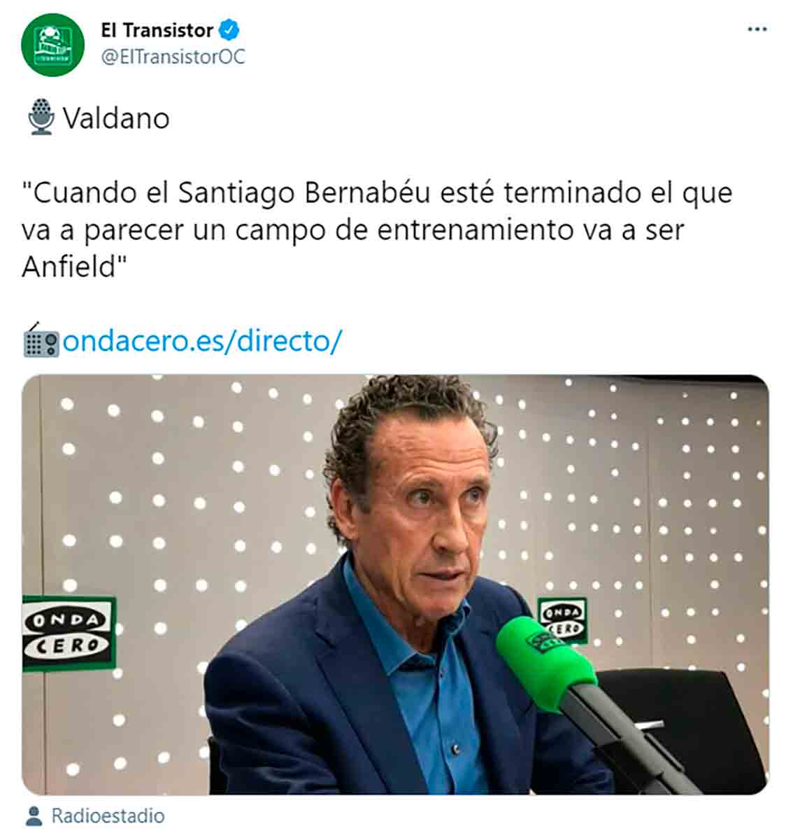Aunque la mejor respuesta a Jürgen Norbert Klopp se la ha dado Jorge Alberto Valdano: “Cuando el Santiago Bernabéu esté terminado el que va a parecer un campo de entrenamiento va a ser Anfield”. Zas, en toda la boca. Disfrutad.