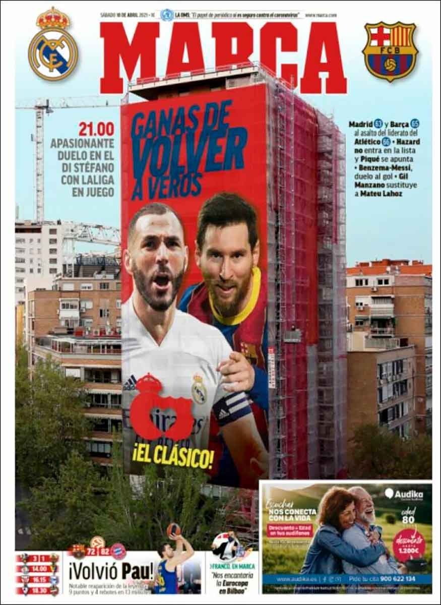 Felicitamos a Marca por su portada, han estado brillantes transformando el cartelón electoral de Jan Berlusconi Laporta en el Paseo de la Habana por un anuncio del clásico. “Queremos volver a veros” reza el cartel modificado por Marca. QUEREMOS VOLVER A GANAROS decimos nosotros. Somos el Madrid y cuantas más dificultados encontremos (o se nos pongan) en el camino, más vamos a luchar: que se marcha el Atleti en la tabla, a por él vamos; que se nos complica la Champions en fase de grupos, nos rehacemos y pasamos primeros; que se nos lesiona hasta el césped del Di Stéfano, volvemos a echar un par de huevos a la sartén, Zidane cocina los esquemas que sean menester y nos sobreponemos. Somos el Madrid, somos el puto Real Madrid (con perdón) y no nos amilanamos nunca.