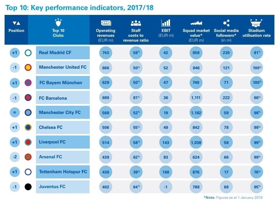 Según el informe anual de la auditora Kpmg - Football Clubs' Valuation: The European Elite 2019 – que analiza la salud económica de los 32 equipos de mayor potencial económico de Europa cada temporada, el F.C Barcelona ha descendido de la tercera a la cuarta posición, superado por el Bayern de Munich, el Manchester United y el Real Madrid que lidera la clasificación. Una de las razones principales de esta pérdida de potencial de los azulgranas es el porcentaje destinado al pago de sus jugadores. Un 81% (ver gráfico) que supera holgadamente los porcentajes que dedican el resto de grandes clubes y que, desde luego, desatiende las recomendaciones de la propia FIFA que sitúan el límite alrededor del 70%.