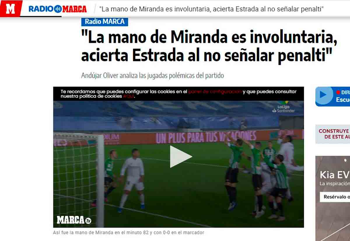 Los mismos que decían que el penalti de Nacho contra el Alavés era muy claro pese a estar de espaldas ahora dicen que no es penalti de Miranda por involuntario pese a que desvía un cabezazo de Militao ,con estos bueyes hay que arar, corta se me queda la idea de la Superliga, debería ser una alternativa no solo a la champions si no a la liga también. Que se la quede Tebas y el avalista Roures,a ver a quién se la venden.