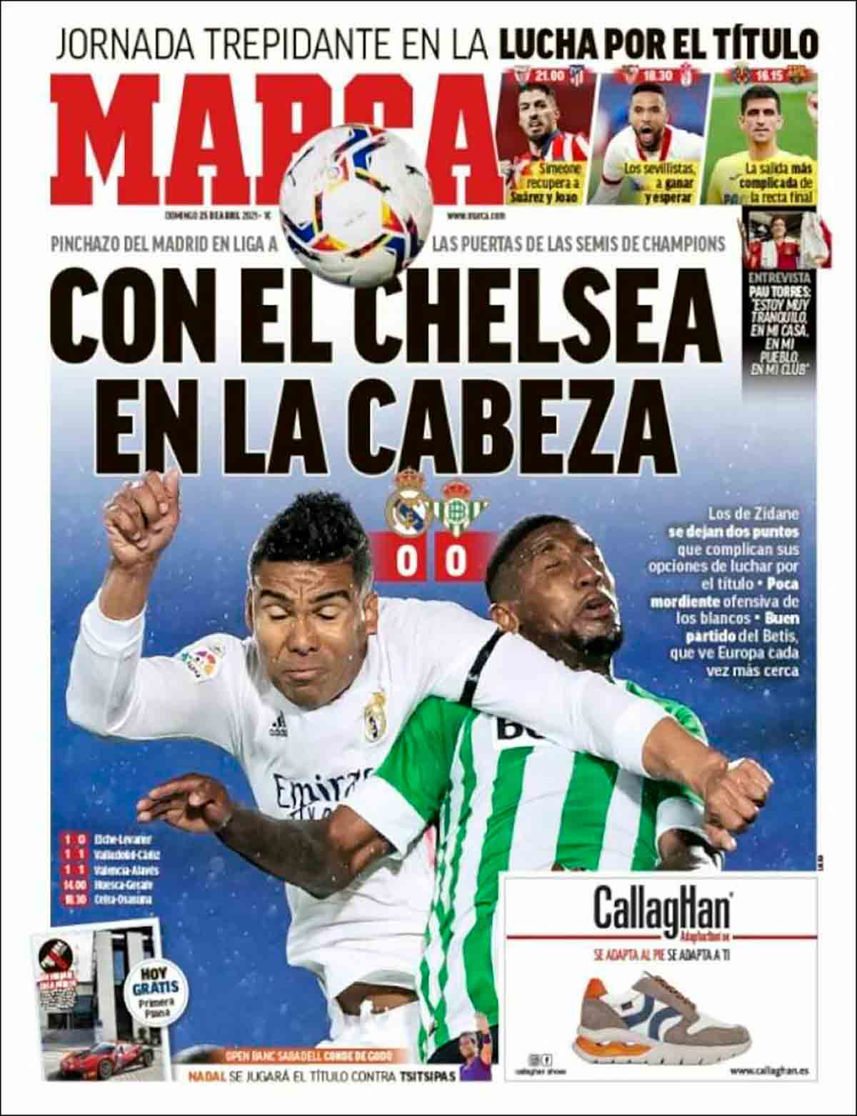La portada hace referencia a que el Madrid parecía tener la cabeza ayer en el partido frente al Chelsea del próximo martes, o es su modo de decir “sigan, sigan, el Madrid tira Ligas por sí solo, aquí no hay ningún Tinglao”. El camino a la Quattordicesima, ese clamor creciente en redes sociales será enormemente complicado, pero el equipo resulta más competitivo cuanto peor se le ponen las cosas. Y a la Historia (y a todo lo ganado en el campo) nos remitimos.