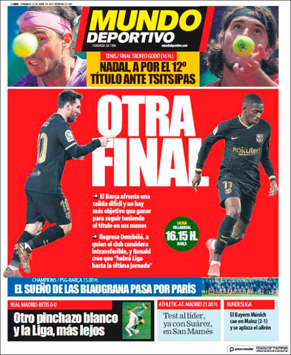 Llamamos la atención sobre un detalle de la portada y es que “regresa Dembélé, a quien el club considera intransferible”, todo lo contrario de lo que indicaba la portada de ayer. Para saber cuál de las dos dice la verdad, hay que fijarse en las pequeñas señales, concretamente en la del dedo del que manda, el propio Messi, que le dice al francés que se vaya de la portada con el mismo tono con el que lleva años pidiendo a los distintos presidentes que le quiten a los elementos que no sean de su agrado.