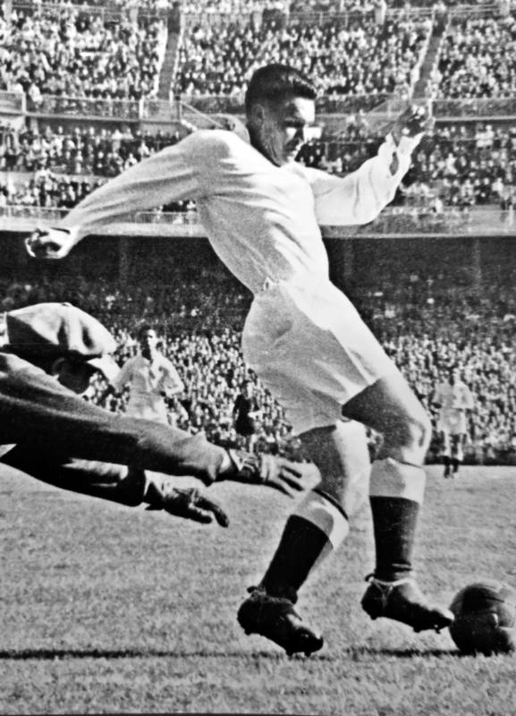Como Sauto, también era médico Alday, el delantero de los primeros años, y Pruden, campeón de la Liga del 41, en la que además fue máximo goleador, jugando con ficha amateur en el Athletic Aviación. Tuvo la desgracia de fracturarse el peroné, y el Athletic Aviación la “prudencia” de no hacerle la ficha profesional que el jugador reclamaba con justicia. Traicionado, el goleador de la liga volvió a Salamanca para jugar en segunda. Así era el fútbol de entonces. Con el Salamanca estuvo dos temporadas, mientras terminaba medicina, y allí le fichó el Madrid, al que se incorporó a tiempo de jugar la Copa del 43. Sus dos mejores temporadas, en las que fue titular indiscutible, con Quincoces y Albéniz de entrenadores, coinciden con las que el Madrid ganó sus dos únicos títulos oficiales de la década. Casi no jugó ya durante la primera vuelta de la siguiente, la desastrosa 47-48, pero con Keeping, cesado Quincoces al principio de la segunda vuelta, recuperó la titularidad. Sus dos últimos goles con el Madrid, que hizo al Oviedo la última jornada, fueron decisivos para eludir el descenso a segunda. Acabó sus días de futbolista jugando en tercera división con el Plus Ultra, y volvió a incorporarse al Real Madrid, esta vez como médico del equipo de las cinco copas de Europa, tras retirarse en el 53. Marcó tres goles en la gran efeméride deportiva que esta generación dejó incorporada a la historia del Madrid. Ocurrió en el campo viejo de Chamartín el 13 de junio de 1943. Una fecha a la que deberíamos rendir tributo cada año, por su importancia simbólica para dos valores que deben ser esenciales al Madrid: la negativa a rendirse por desesperada que la situación se represente, y la comunión con los hinchas cuando vienen mal dadas, abandonado, este segundo, demasiadas veces.