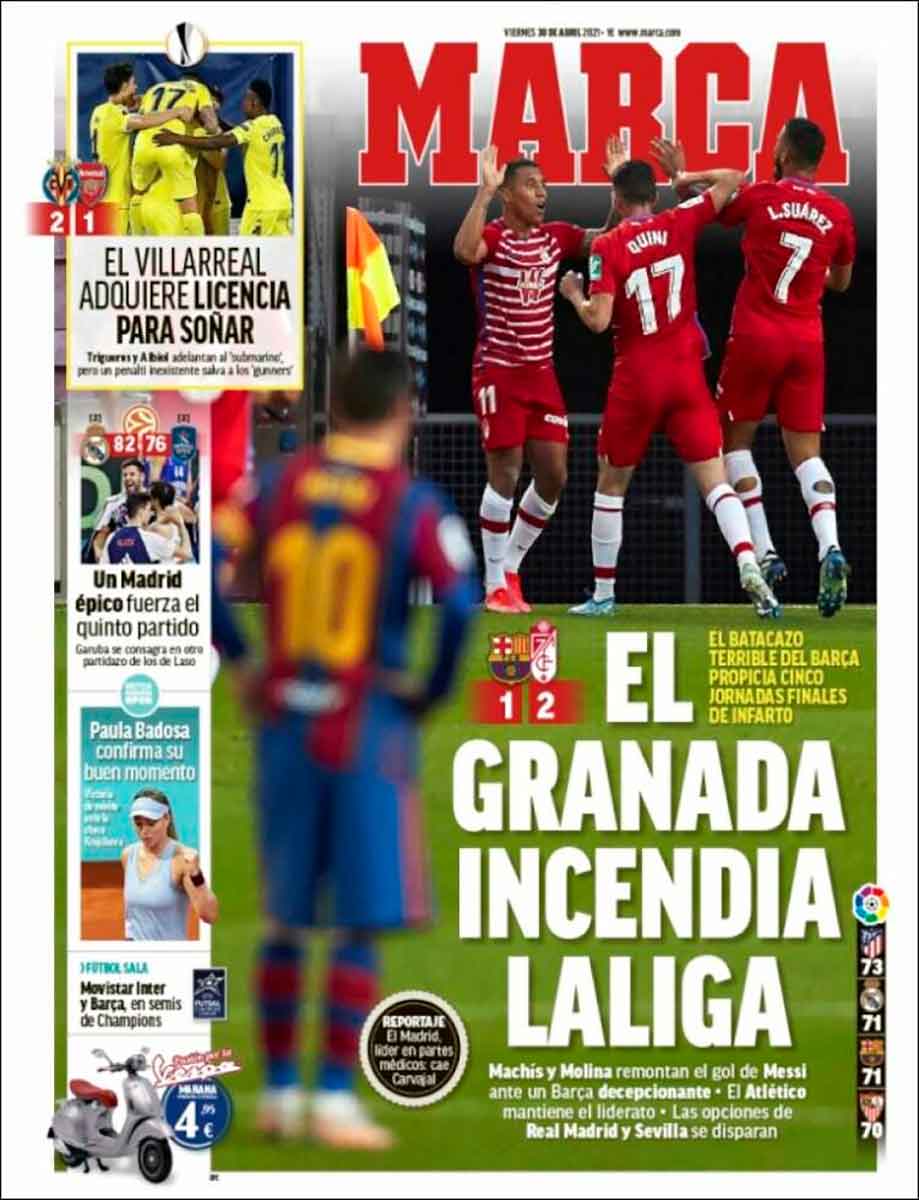 Buenos días. Y decimos bien: BUENOS días. En este caso, se trata de una aseveración, más que de la mera expresión de un deseo para la jornada que principia. No os deseamos que la jornada os sea propicia (a ver: eso también), sino que afirmamos sin sombra de duda que lo es, que lo es porque lo fue ayer, entre los ecos de un nuevo milagro del Real Madrid de baloncesto y de la derrota inesperada del Barça en el propio Camp Nou ante el Granada.