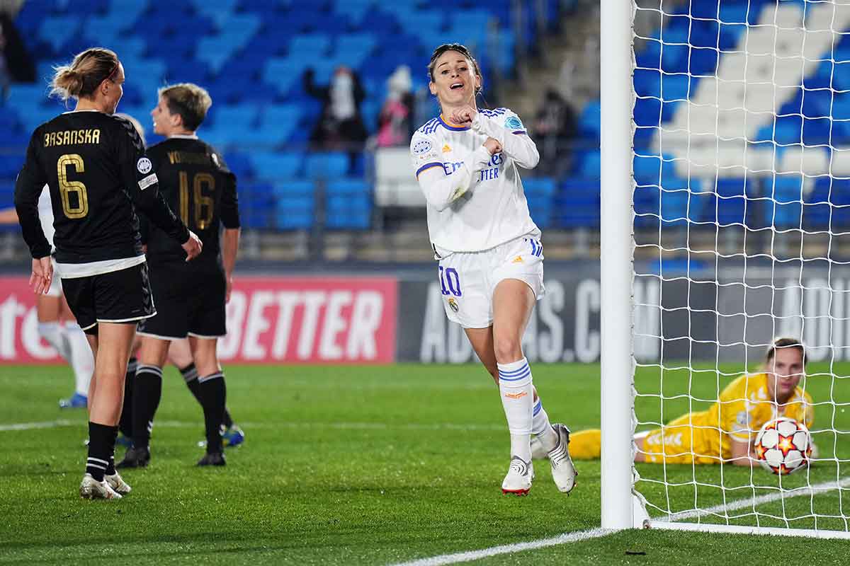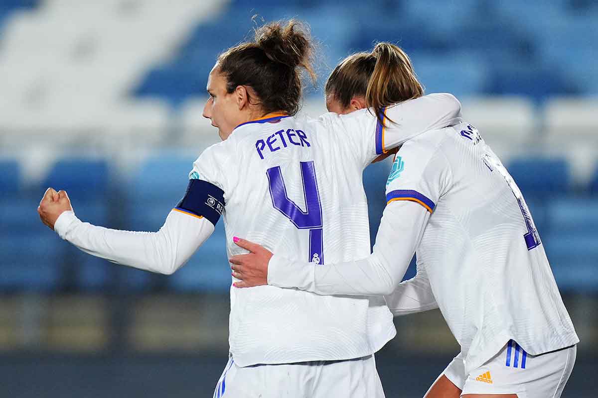 Dado que el escenario no invitaba a las combinaciones primorosas, el Real hizo de la necesidad virtud y supo exprimir el balón parado para marcar distancias en el tanteador. En el 19, Teresa Abelleira sirvió por alto y en profundad una falta centrada buscando el área chica. Su centro lo atacó con comodidad Babett Peter tras haber dejado atrás a su marca y, si bien el remate fue rechazado por la guardameta Maryia Svidunovich, la central en funciones de capitana empujó el balón a gol.