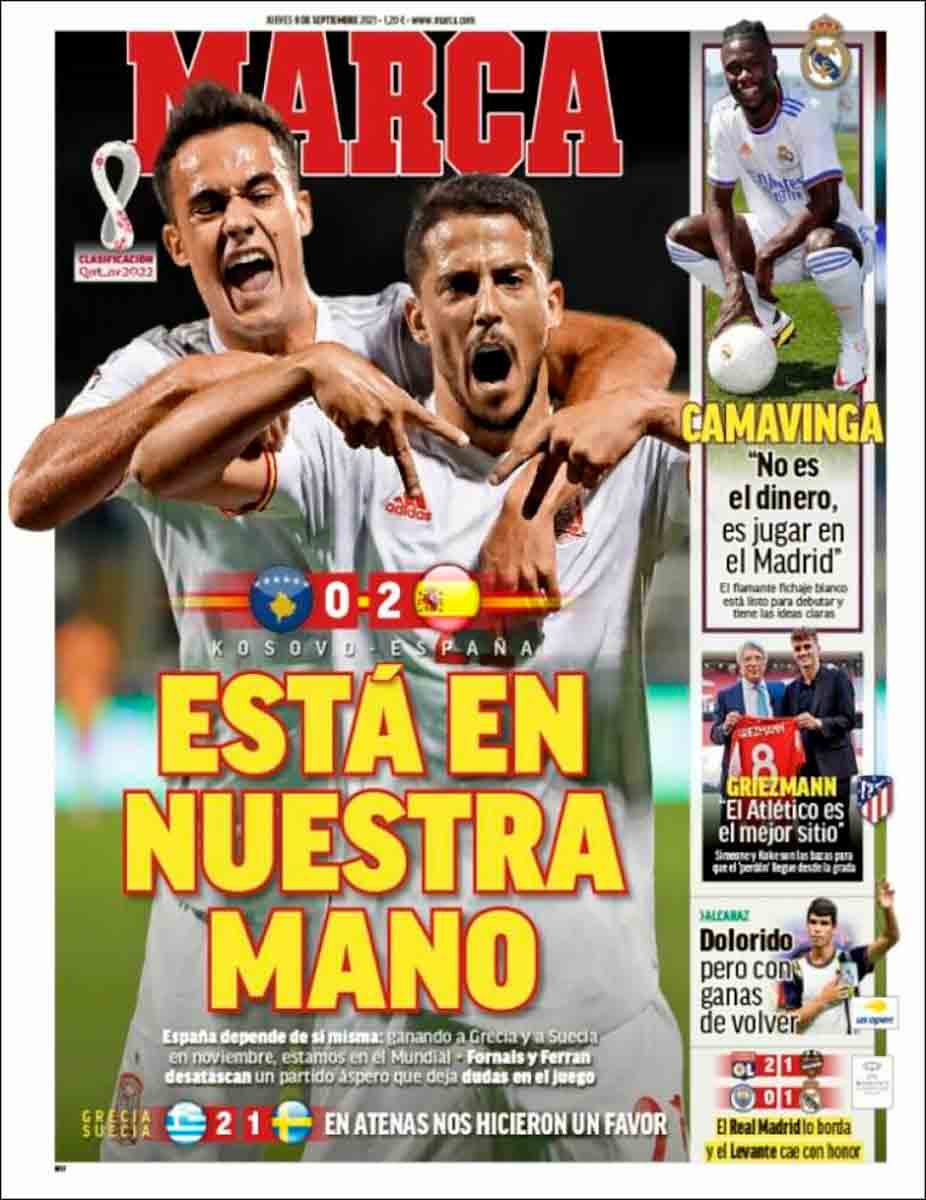 Pero para lo que sí tiene espacio de sobra Marca es para la selección masculina de fútbol, que como bien sabéis, se haya inmersa en plena fase de clasificación para disputar el Mundial de Catar de 2022, ese mundial erigido sobre la muerte de 6500 esclavos.