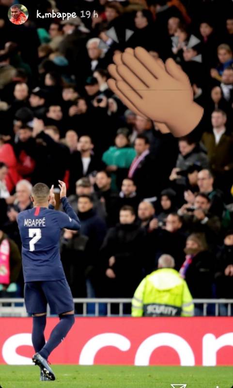El martes, al terminar el partido, Kylian no pudo reprimir el aplauso a la grada del Bernabéu que luego replicó en Instagram para certificar su agradecimiento o quién sabe si su conformidad.