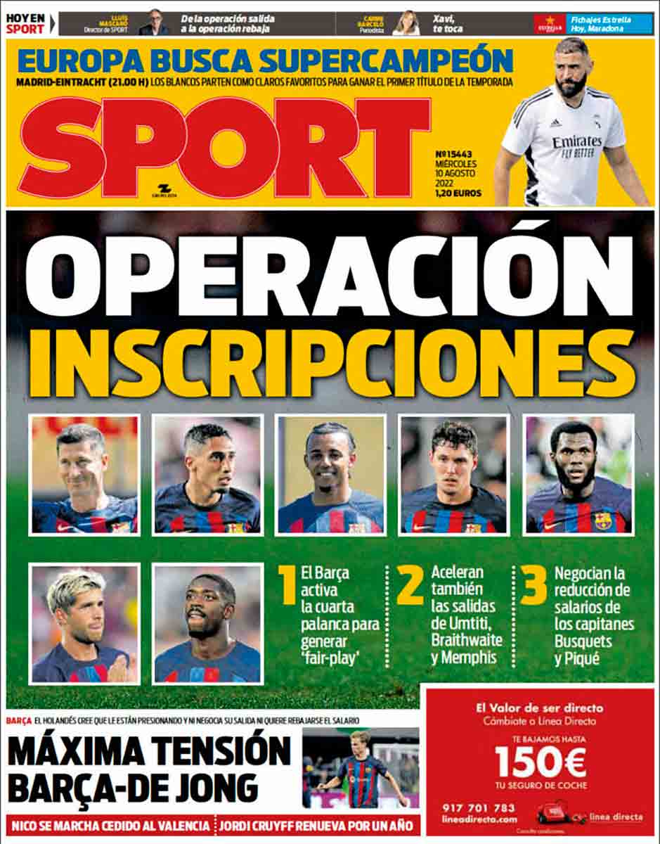 Publica Sport: "operacion inscripciones". Han comenzado a construir la casa por el techo, hablando en un sentido figurado. No tengo dudas de que por medio de las "palancas" lograraran inscribirlos a todos y siempre quedara para el debate si esta accion es financiaramente una practica de fair play o aprovechar sus activos para tapar desbalances financieros, no al alcance de todos los clubes, maxime aquellos que han tenido que administrativamente descender de categoria.