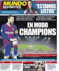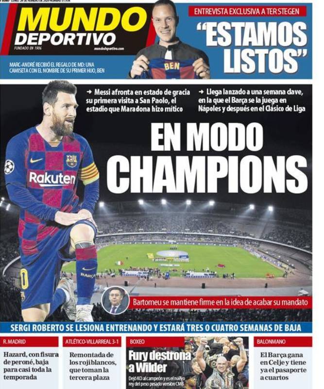 A mí me encantan esas portadas como la del Mundo Vomitivo que titula, En Modo Champions jajajajaaja...llevan haciendo el ridículo máximo en Champions dos años seguidos, pero ridículo y puro esperpento....pero ellos a lo suyo sacando a Messi y hablando de la Champions como si en esa competición en lugar de ser la risa de Europa fueran los campeones y Messi diera lecciones de fútbol....