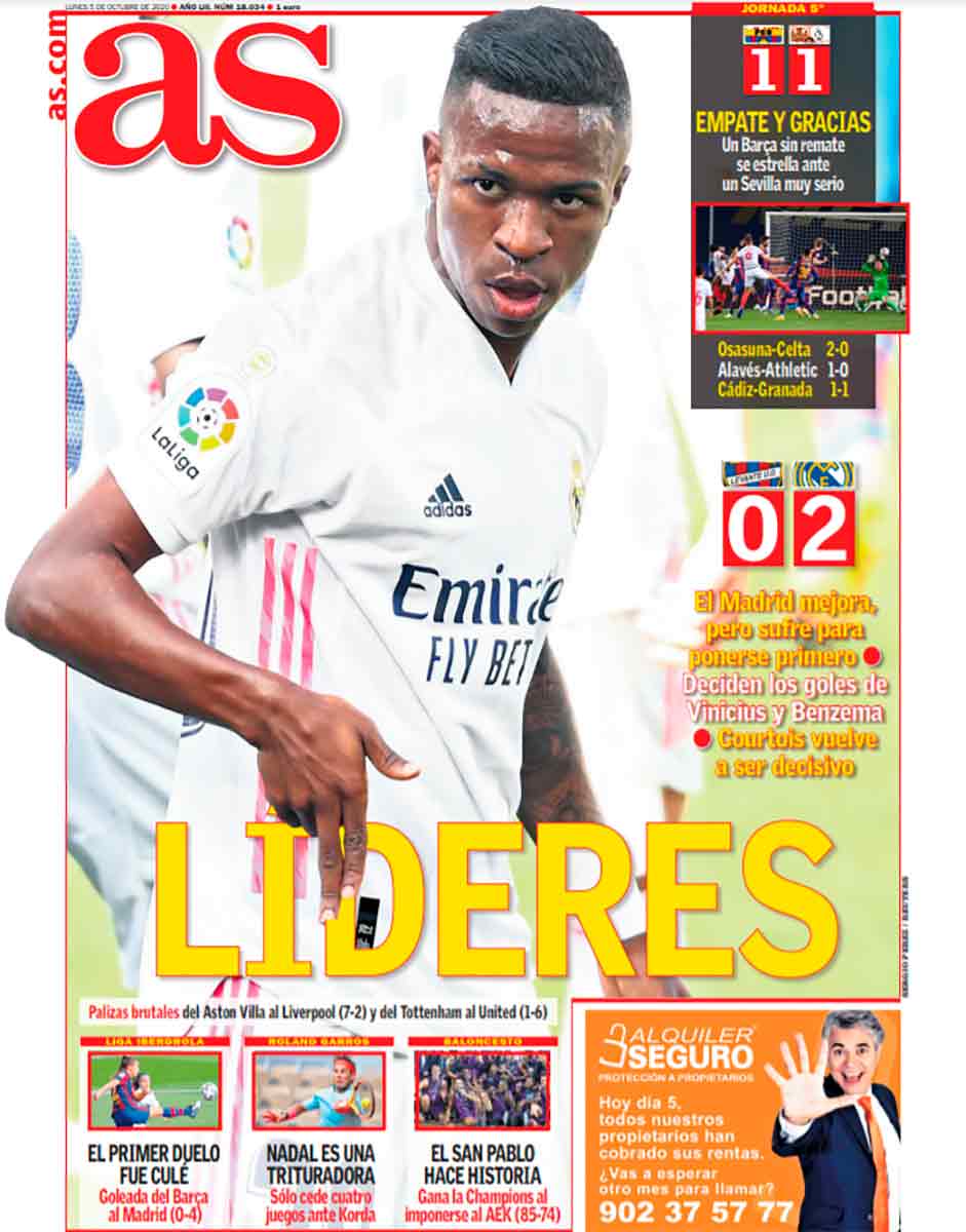 Sport se muestra renuente a apoyar a Santi en su cruzada, pero no a sacudir su habitual y muy risible palo al Madrid. Ved el faldón inferior, a la izquierda. "Courtois aguanta a un Madrid que no engancha". Con crónicas de los de Zidane como esta, ¿quién necesita a Ramón Álvarez de Mon? Lo que se deduce de semejante recuento del partido de la Cerámica nada tiene que ver con lo que vio Ramón y, ya de paso, nada tiene que ver con la realidad. En la realidad, y aunque Courtois lució en un par de intervenciones sensacionales, el Madrid dominó su partido, bien es cierto que con algunas discontinuidades alarmantes, y debió ganar por goleada de haber visto puerta Vinicius y Benzema en las clarísimas ocasiones que fabricaron.