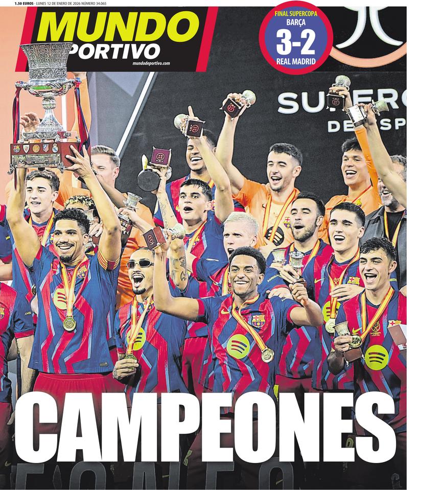 Buenos días. El Real Madrid, como sabéis, sucumbió contra el Barça en la final de la Supercopa disputada en Arabia, país adalid de la lucha contra el machismo, la homofobia y, en general, de los derechos humanos. El «madridista» y «defensor de todas las causas nobles» Marca recoge perfectamente en su portada la alegría «coherente» con ambos preceptos. Por algo el diario de Gallardo es el principal periódico de régimen.
