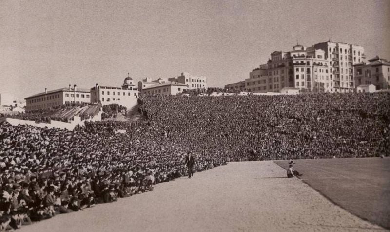 La guerra había devastado Chamartín y sus instalaciones únicas en España, pero también el Stadium Metropolitano. El Athletic, rebautizado como Atlético tras la victoria de Franco y la españolización forzada del lenguaje deportivo (plagado de extranjerismos) estaba literalmente en la picota: sin jugadores, sin socios, sin estadio y sin historia por culpa de la desastrosa década y media que siguió a su decisión de instalarse en el Metropolitano en 1923. El Madrid, también enfrentado a “una especie de hora cero en abril de 1939: sin dinero, sin plantilla, sin directiva, sin socios, con el estadio seriamente dañado y bajo sospecha política”, había alcanzado en cambio un grado de identificación durante el período republicano tanto con la ciudad como con la popularidad masiva del fútbol en esos años que, sin embargo, le costaron el desdén, la desconfianza y la frialdad de los nuevos amos de España: el Madrid era el equipo de Madrid, la ciudad cuya resistencia había provocado en gran medida la prolongación sangrienta del golpe de Estado de julio del 36. Madrid era la ciudad sobre la que la atención mundial había estado centrada los tres últimos años, icono del antifascismo internacional y símbolo de la crueldad de la guerra; el Madrid era, en un sentido amplio, el equipo del pueblo, sobre todo del pueblo madrileño, de un pueblo que padeció un proceso de “redefinición” de la capitalidad a partir de 1939. Serrano Súñer, primer ministro de la Gobernación de Franco y su Cuñadísimo, propuso incluso trasladar a Sevilla o a Burgos la capital de España por la fidelidad que esas ciudades habían mostrado a los sublevados desde el inicio del golpe, en contraste con la agónica resistencia de Madrid. Bahamonde dice que la idea dominante en los primeros compases de la postguerra era “depurar y transformar Madrid en el símbolo del Estado” y cita al propio Serrano Súñer, quien en una reunión con el recién reconstituido ayuntamiento madrileño, en mayo del 39, les pedía “trabajar para acaba con la españolería trágica del Madrid decadente y castizo, aunque haya de desaparecer la Puerta del Sol y ese edificio de Gobernación que es caldo de cultivo de los peores gérmenes políticos”.