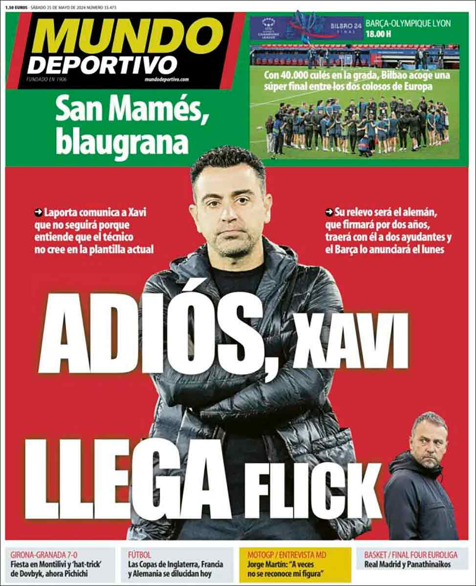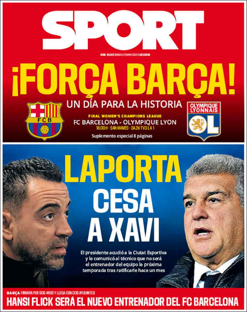 Sugiere el periobarcelonismo en portada que Flick —del que desconocemos su parentesco con Flak o relación alguna con manecillas de un reloj— vendrá con dos ayudantes de verdad, de los que entrenan, de los que innovan como Davide, técnicos que distan mucho del cuñadismo que presidió los entrenos teletubbie de la nueva era azulgrana. Gloriosa.